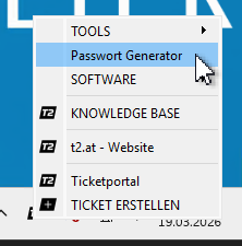 Genau dafĂŒr haben wir ab sofort eine Lösung fĂŒr alle unsere Kunden: Den T2.at Passwort-Generator â verfĂŒgbar direkt ĂŒber das T2 Tray-Icon in Ihrer Taskleiste.